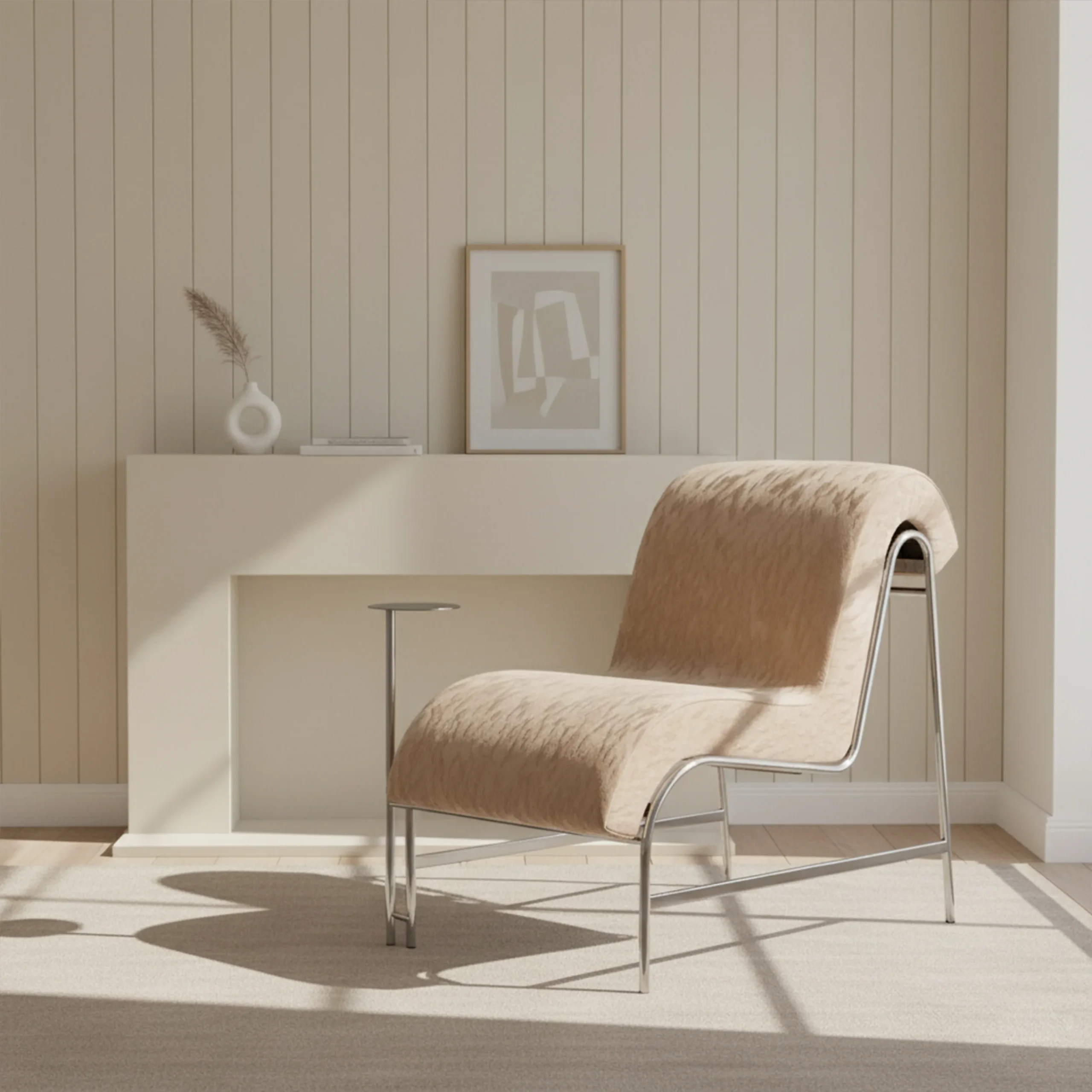 A statement of sculptural minimalism, the Zelo Chair features a curved wooden frame with an upholstered seat that exudes effortless sophistication. Compact yet impactful, it elevates any nook or lounge corner.